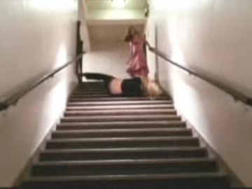 無防備にただ転げ落ちているのではなく、ケガをしないためのセオリーみたいなものはスタントウーマンの中にあるのだろうけどね。それはどんなものなのか、想像しながら繰り返し見るのも「階段落ち」の楽しみのひとつ。